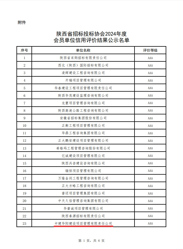 中建華陽(yáng)獲評(píng)陜西省招標(biāo)投標(biāo)協(xié)會(huì)AAA級(jí)信用企業(yè),彰顯卓越實(shí)力與誠(chéng)信風(fēng)范